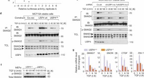 Ten Dijke and colleagues identify USP4 as a deubiquitylating enzyme (DUB) for the TGF-β receptor I in a screen for ubiquitin-specific proteases affecting TGF-β signalling. USP4, present in a complex with other DUBs, is regulated by AKT-mediated phosphorylation and is required for TGF-β-induced breast cancer cell migration and metastasis.