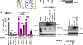 • DNAPKcs and its kinase activity are required for blunt DNA break end joining when the bridging factor XLF is weakened, but for homologous recombination and radiation resistance, the influence of DNAPKcs is not further enhanced with loss of XLF.
