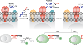 Site-specific attachment of a programmable motif, such as a synthetic nucleic acid tag, on a target protein can facilitate functional studies of proteins in cells or modulation of protein activity. Now, a small genetically encoded peptide enables the templated incorporation of a peptide nucleic acid tag onto membrane proteins in live cells.