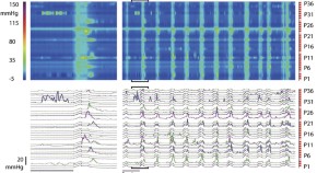 The segmentation motor activity of the small intestine is believed to be a result of alternating inhibitory and excitatory neural activity. Huizinga et al.show that the segmentation motor pattern is in fact a result of phase–amplitude interactions of slow-wave activities generated by two networks of interstitial cells of Cajal.