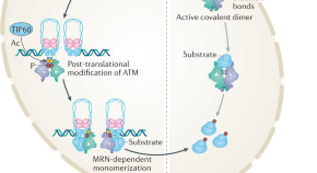 Deficiency in the protein kinase ATM — a master regulator of double-strand DNA breaks and stress responses — causes ataxia telangiectasia (A-T). Recent studies link A-T with other neurodegenerative disorders, and implicate reactive oxygen species, mitochondrial dysfunction, defects in proteostasis and metabolism, and increased poly(ADP-ribosyl)ation in the aetiology of A-T.