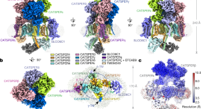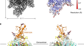 NALCN, a sodium leak channel, plays a key role in regulating the resting membrane potential and controlling neuronal excitability. Here the authors report a cryo-EM structure of human NALCN in complex with FAM155A, that with complementary functional analyses provide insights on its ion selectivity, voltage sensing and specific interactions with auxiliary subunits.