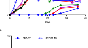 During the erythrocyte (RBC) stage of P. falciparum infection variant surface antigens (VSAs) such as PfEMP1s and RIFINs expressed on RBCs are important for infection and evasion of host innate immune system. Here, Chew et al. use a NSG mouse model, which is deficient in B, T and NK cells but retains macrophages, to show that PfEMP1 surface expression is required for in vivo adaptation as well as in vitro evasion of macrophage phagocytosis.