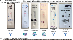 Arumugam, Ma et al. automate the interpretation of lateral flow assays by applying their software architecture to photos taken with a smartphone camera. The approach is rapidly adapted to other test kits using only a fraction of the images required for existing methods, with all test results successfully classified.