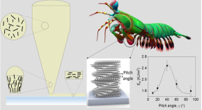 Inspired by Bouligand structure in the dactyl club of the mantis shrimp, direct ink writing is used to 3D print Bouligand composites reinforced with glass microfibres at controllable pitch angles. The Bouligand composites with a pitch angle of 40˚ exhibited a maximum energy absorption of 2.4 kJ/m2, which was 140 % higher than the unidirectional composites. The topography of the fractured surface supplemented with numerical simulations revealed the combination of crack twisting and crack bridging mechanisms. These findings have implications for the microstructural design of engineered composites using direct ink writing for applications in aerospace, transportation, defense, etc.