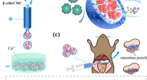 The β-cell microcapsules prepared by the microfluidic electrospray method were transplanted into the omentum pouch of mice for intelligent release of insulin to treat diabetes. Studies have shown that microcapsules can encapsulate cells while allowing nutrients and metabolites to enter and exit. This ability helps protect cells, improve cell activity, and reduce inflammation. In addition, the β-cell microcapsules can intelligently release insulin. The constructed living cell biosystem was further demonstrated its potential as artificial islets to be transplanted into diabetic mice omentum pouch to control blood glucose levels and thus treat diabetes of mice.