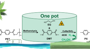 To solve the serious problem of white plastic pollution many degradation routes are being investigated. Here the authors show a H2-free low-cost Cu/SiO2 catalyzed process to quantitatively convert polyethylene terephthalate into p-xylene and ethylene glycol in one pot with methanol as both the solvent and hydrogen source at 210 °C.