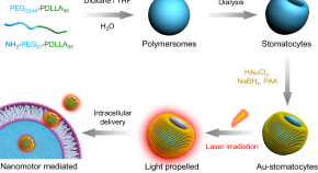 The development of methodologies to construct fast-moving, biodegradable polymeric nanomotors remains a challenge. Here, the authors present a light-propelled nanomotor by adorning the surface of bowl-shaped stomatocytes with gold nanoparticles achieving particle translocation in mammalian cells through the temporary disruption of the cell membrane.