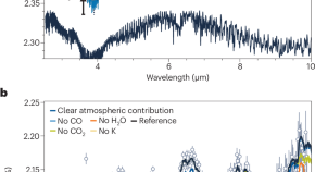 • The medium-resolution transmission spectrum of the exoplanet WASP-39b, described using observations from the Near Infrared Spectrograph G395H grating aboard JWST, shows significant absorption from CO2 and H2O and detection of SO2.