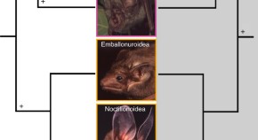 Substantial evidence now supports the idea that the ancestral bat was a small, night flying predator capable of laryngeal echolocation. Here, the authors confirm this hypothesis using phylogenetic comparative analyses and further suggest an underlying tradeoff between echolocation and vision in both ancient and modern species and an association between sensory specialization and diet.
