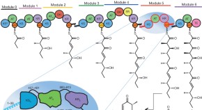 Polyketide synthases are multidomain enzymes that produce polyketides, which form the basis of many therapeutic agents; here, electron cryo-microscopy is used to establish the structure of a bacterial full-length module, and to elucidate the structural basis of both intramodule and intermodule substrate transfer.