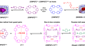 Hierarchical non-intertwined ring-in-ring complexes are intriguing but challenging supramolecular targets. Here, the authors describe a box-in-box assembly based on radical-pairing interactions between two rigid diradical dicationic cyclophanes; the inner box can further accommodate guests to form Russian doll-like assemblies.