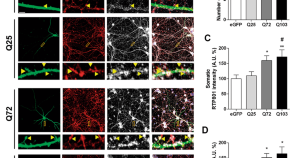 Huntington's disease is a neurodegenerative disorder associated with glutamate receptor dysfunction. Now Isabel Pérez-Otaño and colleagues report that the HTT protein that aggregates in the brains of individuals with the disease disrupts the ability of the adaptor protein PACSIN1 to keep the glutamate receptor subunit GluN3A away from the surface of neurons.