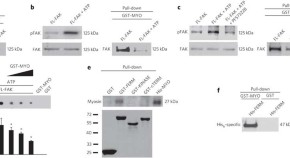 An intramolecular cleft of the FAK FERM domain mediates interaction with sarcomeric myosin. Chemical cross-linking, SAXS and mutational analyses confirm the interaction, and inhibiting the interaction with a peptide activates FAK and promotes the cardiomyocyte hypertrophic response.