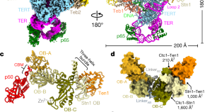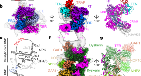 The long-awaited structure of a telomerase holoenzyme, from Tetrahymena, has been obtained by electron microscopy; affinity labelling of subunits and modelling with NMR and crystal structures of various components allowed the identification of the catalytic core and subunit interactions, and the functional role of the subunits in telomerase processivity was enabled by performing the first reconstitution of the holoenzyme in vitro.