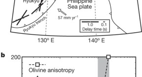 Although seismic anisotropy in the upper mantle is generally attributed to the crystal-preferred orientation of olivine, the strong trench-parallel anisotropy observed in several subduction systems is difficult to explain in terms of olivine anisotropy. Using high-pressure deformation experiments, it is now shown that the crystal-preferred orientation of serpentine, the main hydrous mineral in the upper mantle, can produce the strong trench-parallel seismic anisotropy observed in such subduction systems.