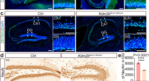 Zhang et al. report that KDM2B-∆CxxC activated Wnt signaling in the developing hippocampi, where the migration and differentiation of neural progenitors were blocked. KDM2B-∆CxxC mice exhibited defects of hippocampal morphology and related behaviors.