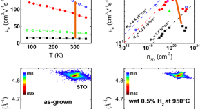 The scattering of charge carriers with line defects, i.e., threading dislocations, needs to be decreased to further enhance electron mobility of lattice-mismatched epitaxial films and heterostructures for the application of high-performance electronic devices. Here, we report a strategy to post-treat epitaxial La-doped BaSnO3 films by delicately controlling oxygen partial pressure p(O2), which achieved significant increase in room temperature electron mobility to 122 cm2∙V−1∙s−1. This mobility enhancement is attributed to an oxygen vacancy-assisted recovery process that reduces the density of dislocations by accelerating the movement of dislocations in ionic crystals under p(O2)-controlled treatment, despite an increase in the density of charged point defects.