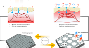 Developing materials which mimic thermal homeostasis is limited by complicated fabrication steps or unidirectional temperature transport. Here, the authors develop a homeostatic hydrogel that shows improved heat trapping at low temperatures, and enhanced evaporative cooling at high temperatures.