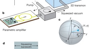• The quantum light–matter interaction between a superconducting artificial atom and squeezed vacuum reduces the transverse radiative decay rate of the atom by a factor of two, allowing the corresponding coherence time, T2, to exceed the ordinary vacuum decay limit, 2T1.