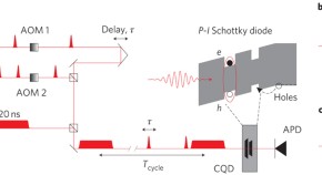 • Researchers demonstrate fast, single-qubit gates using a sequence of 13 ps pulses. Two vertically stacked InAs/GaAs quantum dots were coupled through coherent tunnelling and charged with controlled numbers of holes. The interaction between hole spins was investigated by Ramsey fringe experiments, showing a tunable interaction range of tens of gigahertz.