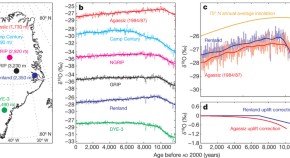 The response of the Greenland ice sheet (GIS) to changes in climate remains uncertain. During the Holocene climatic optimum — an unusually warm period from about 9,000 to 6,000 years ago — changes in Greenland appear inconsistent with the rest of the Northern Hemisphere. Here, the Greenland Holocene temperature history and the evolution of GIS surface elevation are extracted from four GIS locations; the results may resolve this disparity.