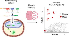 Machine learning has now been shown to enable the de novo design of abiotic nuclear-targeting miniproteins. To achieve this, high-throughput experimentation was combined with a directed evolution-inspired deep-learning approach in which the molecular structures of natural and unnatural residues are represented as topological fingerprints. The designed miniproteins, called Mach proteins, are non-toxic and can efficiently deliver antisense cargo in mice.