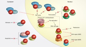 Although known to induce cellular senescence, an important tumour suppressor mechanism, mutation of CDKN1A — the gene encoding p21 (also known as WAF1 or CIP1) — is rare in human cancers. Now, a study reports a previously unappreciated oncogenic effect of p21 overexpression that shapes cancer genome evolution through induction of replication stress.