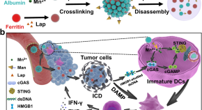 Manganese has a crucial role in cGAS-STING-mediated DNA sensing and has emerged as a STING agonist. Here the authors report the design and characterization of a nanosystem incorporating manganese ions and the chemotherapeutic drug β-lapachone, inducing T-cell mediated anti-tumor immune responses in preclinical cancer models.