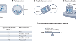 Mechanochemistry is a method of forming chemical products through physical collisions between the milling media — such as small steel balls — and the reactants. Although small amounts of liquid can be added to modify the rheology of the reaction, mechanochemistry is typically a solventless technique, greatly reducing the amount of waste generated compared with traditional solvent-rich reaction conditions. This Primer describes variations in setting up a mechanochemical reaction, methods for measuring reaction progress in situ and recent applications — such as pharmaceutical production — in which mechanochemistry aims to serve as a greener alternative to traditional chemical manufacturing.