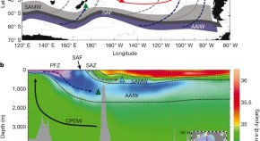 • At the end of the last ice age, rising atmospheric CO2 levels coincided with a decline in radiocarbon activity, suggesting the release of highly radiocarbon-depleted CO2 from the deep ocean to the atmosphere. These authors present radiocarbon records of surface and intermediate-depth waters from two sediment cores and find an decrease in radiocarbon activity that precedes and roughly equals in magnitude the decrease in the atmospheric radiocarbon signal during the early stages of the glacial–interglacial climatic transition.