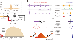 Generally infrared and Raman spectroscopic methods are needed to study the symmetric and asymmetric molecular vibrational modes. Here the authors demonstrate complementary vibrational spectroscopy to organic molecules by simultaneously measuring their symmetric and anti-symmetric vibrations with one setup.