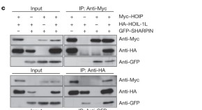 The ubiquitin conjugation system regulates the canonical NF-κB activation pathway, which mediates immune responses. Linear polyubiquitin chains—in which the C terminal glycine of ubiquitin is conjugated to the α-amino group of the amino-terminal methionine of another ubiquitin—are generated by a unique ubiquitin ligase complex called linear ubiquitin chain assembly complex (LUBAC) composed of two RING domain proteins called HOIL-1 and HOIP. This is one of three complementary studies identifying a novel component of the LUBAC complex called SHARPIN, which is recruited to receptor signalling complexes (RSCs) that form after TNF and CD40L stimulation. The LUBAC complex containing SHARPIN stimulates the formation of linear ubiquitin chains in vitro and in vivo and is required for the activation of NF-κB signalling.