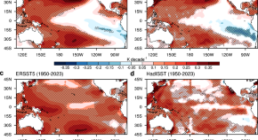 Strong negative climatological air-sea interactions effectively damp warming over the eastern Indian Ocean, resulting in weakening of the winds therein. This, in turn, changes the strength of ocean currents, which is considered as the primary mechanism responsible for modulating warming patterns.
