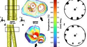 • Quasicrystals exhibit long-range order without periodicity. The authors report an approach for quasicrystal fabrication and show through in situ imaging and corresponding simulations the formation of a single decagonal quasicrystal arising from coalescence of multiple quasicrystals in a liquid.