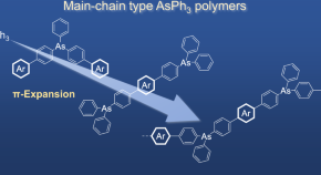 The first main-chain type triphenylarsine (AsPh3) polymers were synthesized by Suzuki-Miyaura polycondensation. The electronic and photophysical properties of the AsPh3 polymers were comparison with model compounds by experimental and computational methods. As a result, it was found that the conjugated systems were expanded through the arsenic atoms. The present AsPh3 polymers are promising as luminescent materials.