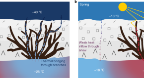 Most work on phenological mismatch has focused on temporal trends only. Here, the authors analyse trends in spatial and temporal mismatch between trees, caterpillars and birds in the UK, and find delayed phenology of all species with increasing latitude and little spatial variation in the magnitude of mismatch between caterpillars and birds.