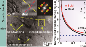 A submicron structure strategy was introduced in a selective laser melted (SLM) Ag-Cu-Ge alloy, showing semi-coherent precipitates distributed in a discontinuous but periodic fashion along the cellular boundaries. It leads to a remarkable strength of ~410 MPa with ~16% ductility, well surpassing the strength-ductility combination of their cast counterparts. The hierarchal SLM microstructure and high density of internal defects leading to a high strain hardening rate and strong strengthening. Premature failure occurred due to the external defects, such as pores and unmelted particles. This work paves a way for additively manufacturing materials towards high strength–ductility synergy.