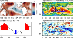 Strong negative climatological air-sea interactions effectively damp warming over the eastern Indian Ocean, resulting in weakening of the winds therein. This, in turn, changes the strength of ocean currents, which is considered as the primary mechanism responsible for modulating warming patterns.