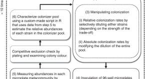 Species coexistence can be explained by the competition–colonization trade-off theory. Here, Livingston et al. illustrate this theory in a metacommunity experiment using two bacterial strains, finding a negative correlation between diversity and productivity when scaled to full metacommunities.