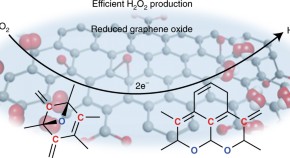 • Electrochemical routes for the production of hydrogen peroxide would reduce the waste inherent in the current anthraquinone process, and also make distributed and on-site production more feasible. Here, inexpensive reduced graphene oxide is proven to be a stable and selective catalyst for oxygen reduction at remarkably low overpotentials.