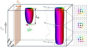 Spin torque nano-oscillators facilitate the control of magnetization dynamics without the need for an external magnetic field and are compatible with CMOS technologies. Here, the authors propose, using micromagnetic simulations, a device comprising of an elongated-skyrmion-based spin torque nano-oscillator, which can be controlled using a spatially uniform current. This elongated skyrmion can also serve as a magnonic waveguide.