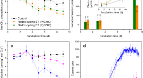 Electron transfer reactions govern most biogeochemical processes, yet we have a limited knowledge of the electrochemistry of pyrogenic carbon, a major component of organic matter. Here, the authors quantify electron transfers between pyrogenic carbon and mineral phases under different pyrolysis temperatures.