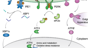 Engineering cell factories that support the production of large quantities of protein therapeutics remains a significant biomanufacturing challenge. Here the authors engineered cells to sense an early marker of the Unfolded Protein Response (UPR) and, in response, modulate specific UPR signaling pathways mediating stress attenuation and/or apoptosis.
