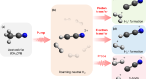 The H2 roaming mechanism in organic molecules is involved in the formation of \({{{{{{{{\rm{H}}}}}}}}_{3}}^{+}\), one of the most abundant molecular ions in the universe, but its direct visualization has been challenging. Here the authors obtain direct insights into these complex dynamics by tracking the roaming H2 molecules in acetonitrile with time-resolved Coulomb explosion imaging.