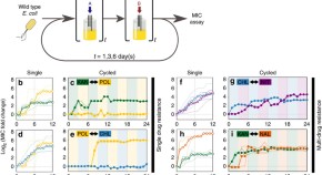 • It is unclear whether strategies involving antibiotic cycling can efficiently control the emergence of antibiotic-resistant bacteria. Here, Yoshidaet al. show that the evolution of multi-drug-resistant bacteria in vitrocan be manipulated by administering pairs of antibiotics and switching between them.