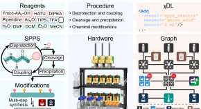 • Automated synthesis technologies are often highly specialized, focusing only on a narrow set of reaction classes. Now, solid-phase peptide synthesis, iterative Suzuki–Miyaura cross-coupling and diazirine chemistry have all been automated using the same universal platform architecture. A convergent 12-step synthesis demonstrates the utility of the reported Chemputer system.