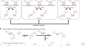 • The direct glycosylation of ribose by nucleobases offers an intuitive route to nucleosides, but is known to be challenging under prebiotically plausible reaction conditions. Here, the addition of amino acids is shown to influence the product distribution, and a dynamic exchange of nucleobases between nucleosides and nucleotides is observed.