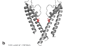 • NaK is a bacterial non-selective cation channel. Here, the authors use solution NMR to show that selectivity filter (SF) in NaK is dynamic, with structural differences between the Na+ and K + -bound states. The conformation of the SF is communicated to the pore-lining helices similarly as in the K + -selective channels.