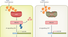 The mechanisms underlying virus perception and immune activation in plants remain poorly understood. Recent work shows that in rice, an E3 ubiquitin ligase senses viral coat proteins to activate the jasmonate signalling pathway by degrading NINJA3, and triggers downstream antiviral defence responses.